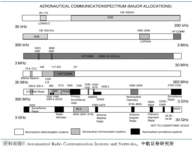 图282 航空通信频谱资源较为紧缺,通信频点较少