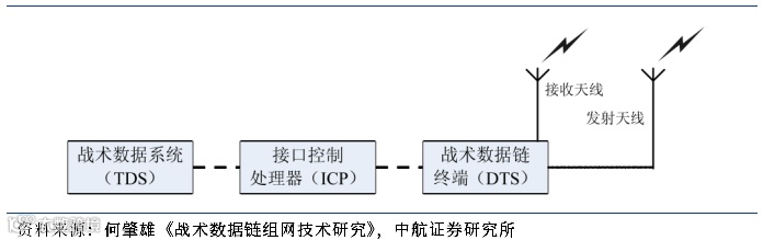 数据链本质上是一种可将不同武器系统或指控系统进行链接的通信系统。对于数据链的定义,不同资料给出了多种描述,根据美军的定义,数据链是通过单/多网通信介质,将两个或两个以上的武器系统/指挥控制系统链接在一起,是一种适合于传送标准化数字信息的通信链路。由传输通道、通信协议、格式化消息三部分组成,从设备角度看,数据链主要包括战术数据系统、加密设备、终端设备、无线收发设备等。