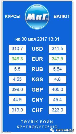 【обменный курс】2017年5月30日哈萨克斯坦坚戈汇率