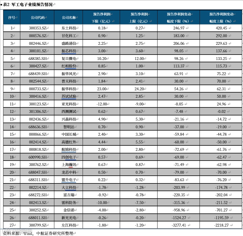审价降价压力与国产替代成本上升。从业绩预减或亏损的企业来看,包括高德红外、富吉瑞、雷科防务、新光光电等企业大多数都提到了2022年产品审价降价对业绩的影响;同时,如四创电子、盟升电子等企业提到了元器件价格提升对业绩的影响。当前我国军工电子方面的国产替代正进入“深水区”,一方面,一些低端或技术含量不高的器件产品在享受“自主可控”早期的需求量与供给量的快速增长后,审价与竞争对产品的降价压力开始显现;另一方面,国产替代要求下,一些国产器件要比国外进口成本高,提升了中下游器组件环节的成本压力。我们认为在这种情况下,中低端军工电子产品的降价到合理区间将会是中长期趋势;“质”的问题将越加突出,一些高性能产品将是未来军工电子行业技术突破的重点,也是重点的投资标的。