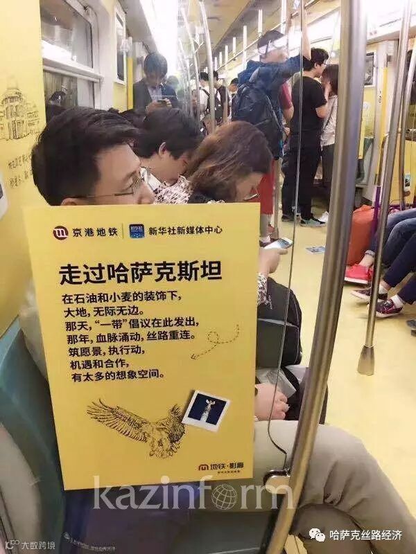 哈通社北京 -据哈通社驻北京记者报道,新华社新媒体中心在北京地铁开展"一带一路"主题车厢和影像展。
