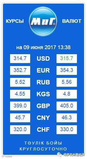 【обменный курс】2017年6月9日哈萨克斯坦坚戈汇率