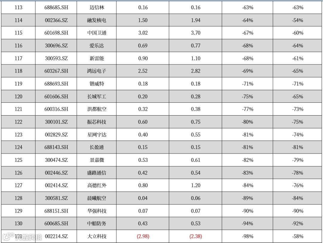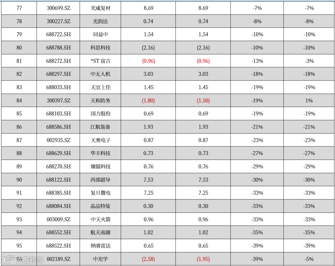 跌幅前五:国光电气(-18.29%)、思科瑞(-14.57%)、上海沪工(-13.74%)、天宜上佳(-11.22%)、中国船舶(-8.41%)。