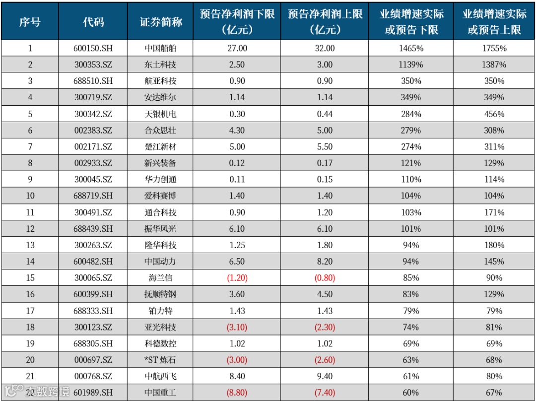二、2023年年报业绩预告数据
