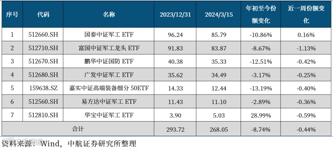 表2 近期主要军工ETF基金份额变化(单位:亿份)