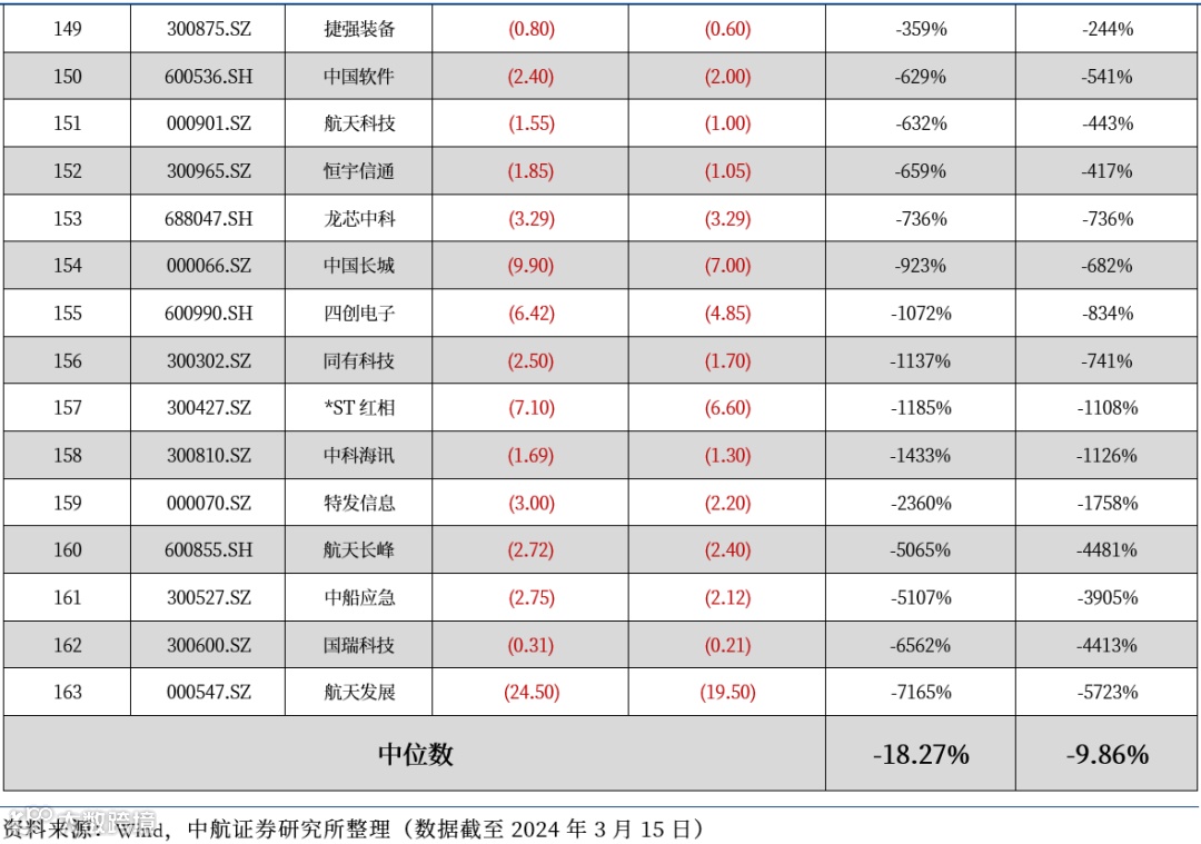 截至2024年3月15日,共计163家企业公布2023年业绩预告(快报)或正式年报,其中74家业绩预增,89家业绩预减,整体来看,目前发布预告(快报)或正式年报的上市公司净利润增速下限中位数为-18.27%,增速上限中位数为-9.86%。