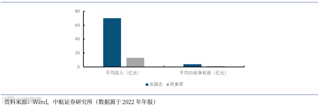 图43 民参军上市公司平均收入、平均利润规模较央国企偏小