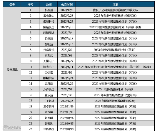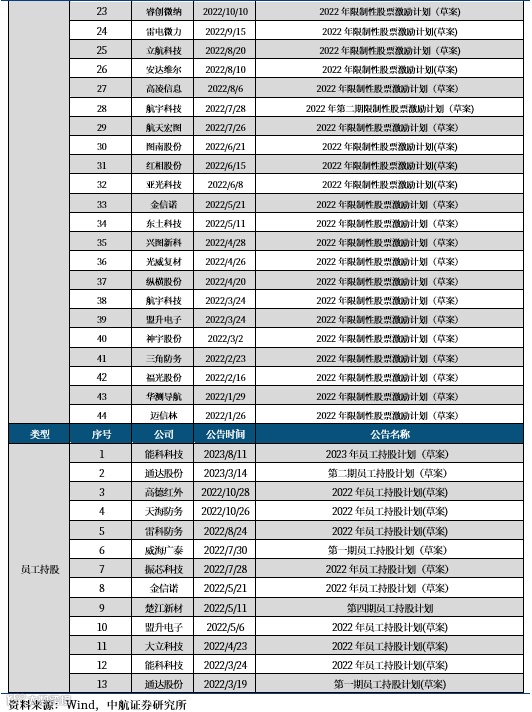 随着民参军企业活力不断激发,管理经营效率以及机制和人员因素的重要性将愈发凸显,近几年来大量民参军企业推出股权激励或员工持股计划,在激励作用下,民参军企业的经营效率有望持续提升,仅2022年以来就有48家民参军企业推出股权激励或员工持股计划,占民参军总数的36%。