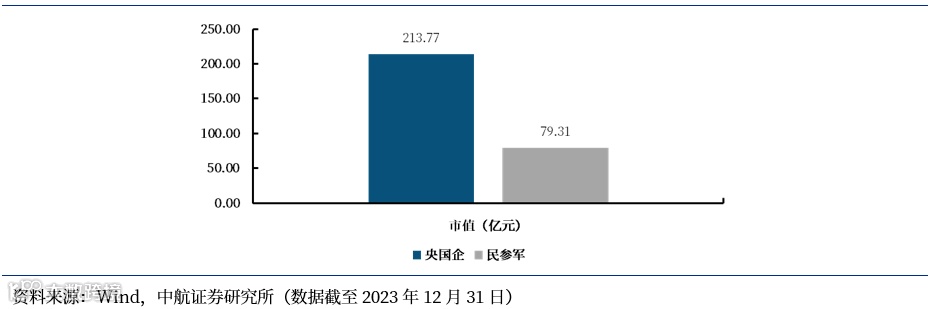 图46 民参军上市公司平均市值规模较央国企偏小