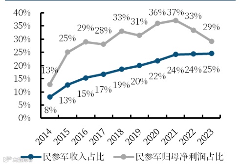 图34 民参军市场份额进一步增大(右图)