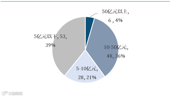 图47 民参军上市公司市值分布情况(单位:家)