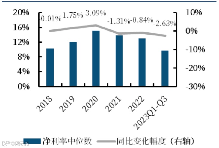 资料来源:Wind,中航证券研究所整理(2023年收入、归母净利润选取2023Q3数据计算,归母净利润统计剔除亏损)