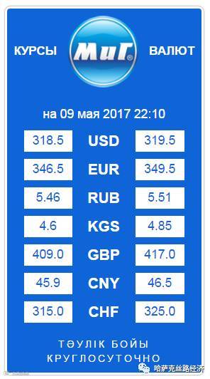 【обменный курс】2017年5月10日哈萨克斯坦坚戈汇率