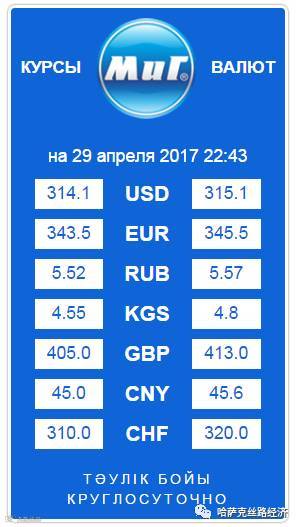 【обменный курс】2017年5月1日哈萨克斯坦坚戈汇率