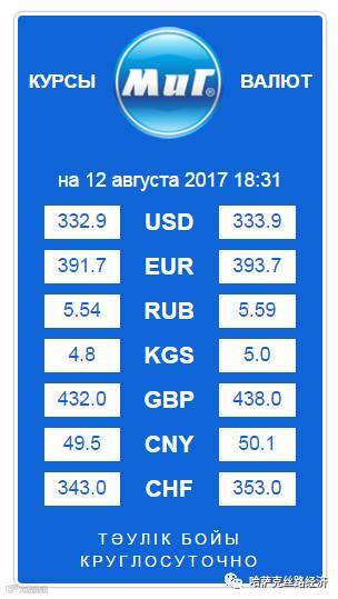 【обменный курс】2017年8月13日哈萨克斯坦坚戈汇率