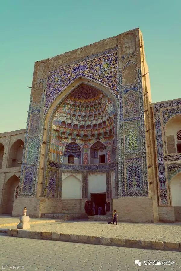 第二点乌兹别克斯坦是信奉伊斯兰教的,从建筑就可以看出来,仅从外观来看确实很完美精致,尤其是圆形屋顶的马赛克图案。但是大部分的景点都是某某名人的陵墓,这还不是重点,重点是陵墓的内部就只有棺椁,与华丽的外观完全不符合。