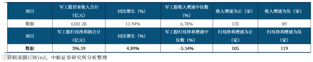 根据具有数据可比性上市公司中报的利润表统计,并按照军品业务占比和企业性质分类,得到几个重要表现,包括: