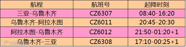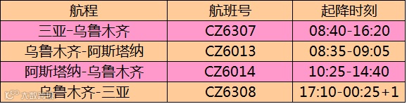 ◆航班:每周一、三、五共三次往返乌鲁木齐与阿斯塔纳