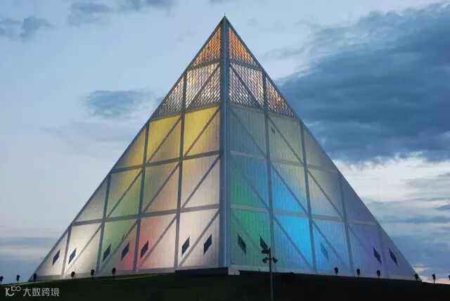 和平宫是一座高达90米的玻璃金字塔,随着灯光环境的变化,会呈现出缤纷不同的色彩,亮瞎小编的双眼~