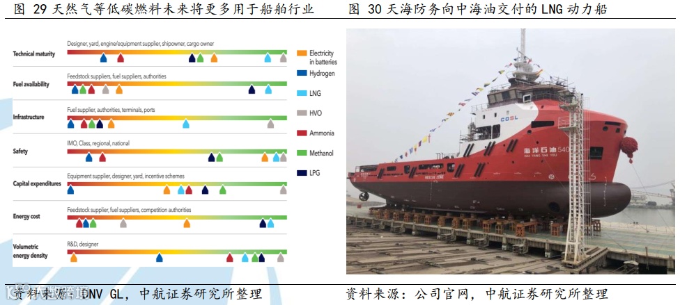 从节能减排的角度看,LNG是较为合适的船用燃料选择。液化天然气(LNG)船舶运输符合我国环保事业发展的要求,在航行时的能耗、二氧化碳和氮氧化物排放可分别降低20%、21%和81%,而且基本不会排放硫氧化物和固体颗粒物。作为清洁能源,利用LNG替代燃油,可调整优化水运交通运输的能源结构、缓解我国石油供需矛盾,又能达到节能减排、实现绿色航运的目标,有利于推进我国环保战略的实施。此外,海事行业也历来注重对环保的要求,在控制碳排之前,海事组织曾先后对氮氧化物和硫氧化物的排放作出要求并开始生效。挪威船级社(DNV)和法国船级社(BV)等权威机构预测未来航运将更多使用LNG等低碳燃料。