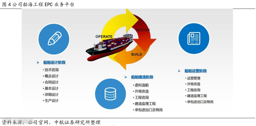 公司四大业务分别是:船海工程技术服务业务、船海工程EPC业务、防务装备业务、新能源业务。