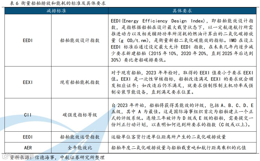 船舶行业碳中和政策将推动存量市场的更新换代。国际海事组织(IMO)于2018年提出的《船舶温室气体减排初步战略》,制定了航运业在2008年基准上,到2030年碳排放强度要降低40%、2050年温室气体年度总排放量降低50%的目标。近年来,IMO先后引入了EEDI(新船能效设计指数)、EEXI(现有船舶能效指数)等监测指标,EEDI要求新建船碳排放要持续降低,从2015年降低10%,到2020年降低20%,一直到2025年后降低30%,要求新建船比老船碳排放要低;EEXI是针对所有400总吨以上的船舶,并将于2023年正式生效,是新造船舶相关的EEDI概念对现有船舶的扩展。为了符合要求,目前看来大概率只有降低航行速度和安装节能设备两种手段。预计未来几年随着EEXI等新政的持续推进,会有很多船舶进入淘汰序列。