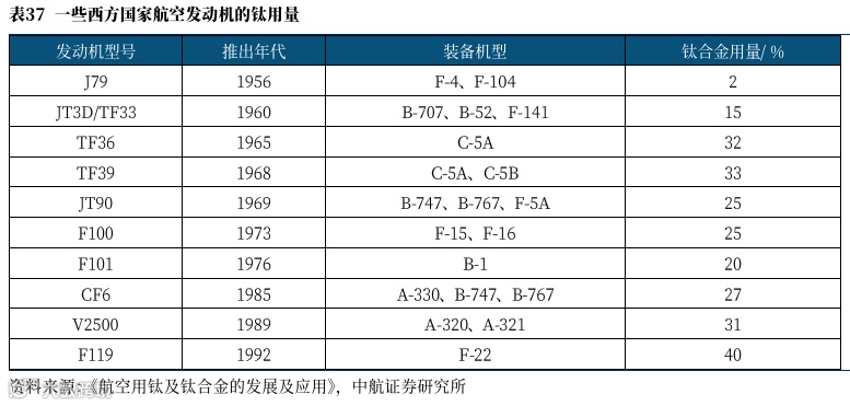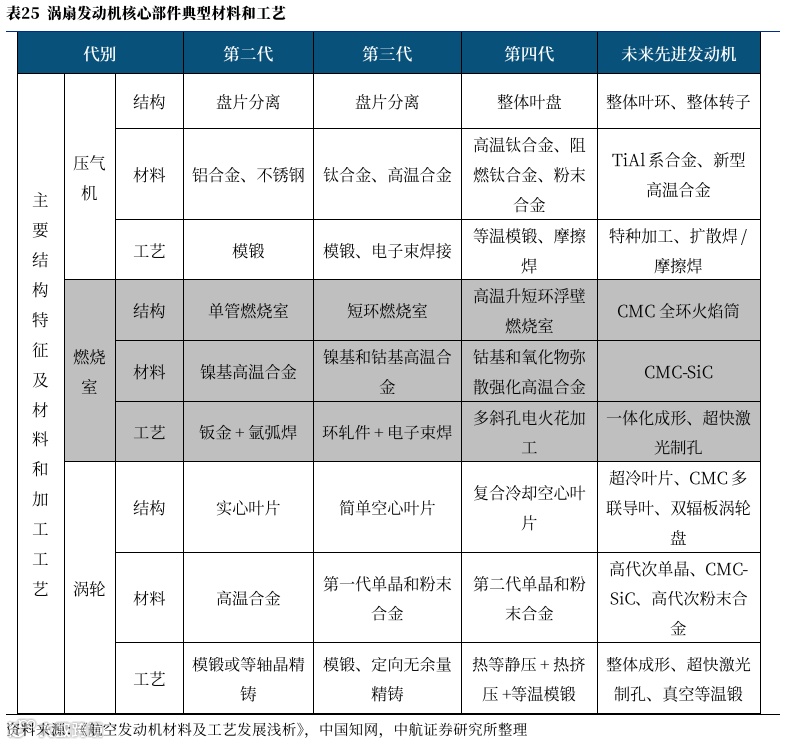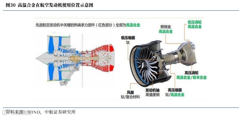 相比于大型航空发动机,小型航空发动机的热端部件温度较低,对于材料要求略有降低,但仍然以铝合金、高强度钢、钛合金和镍基高温合金为主。