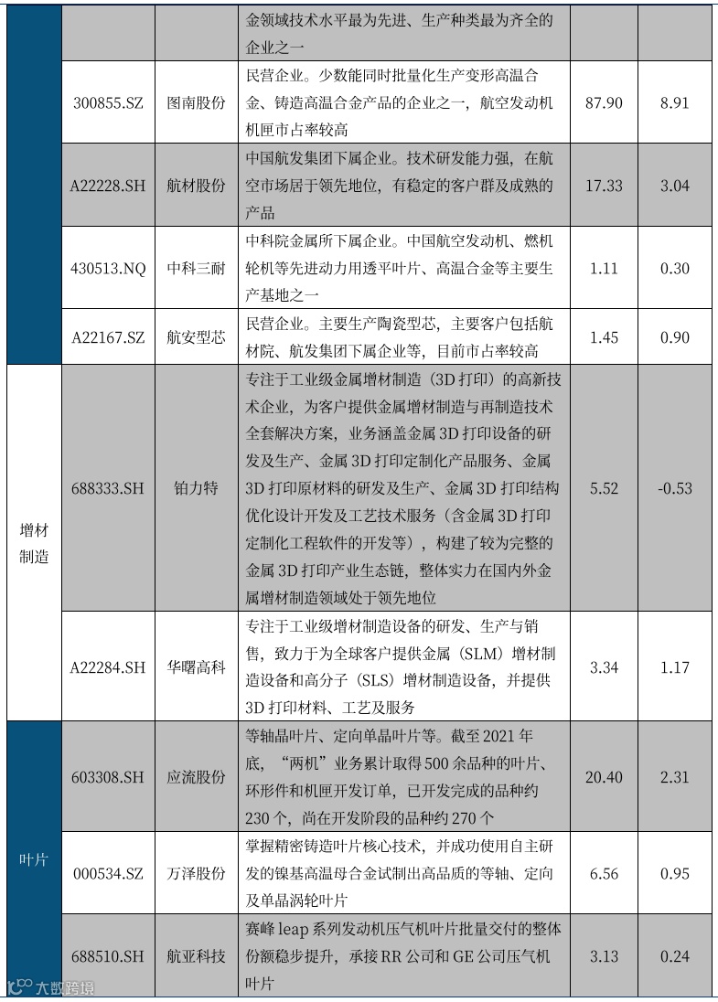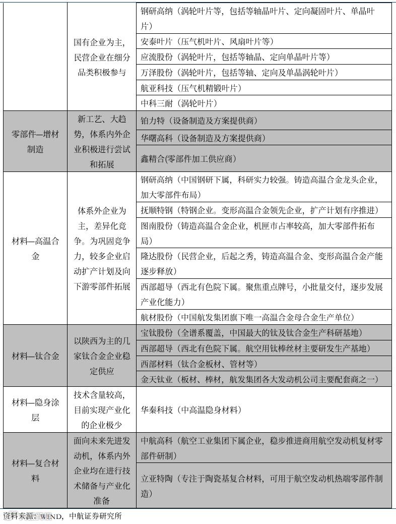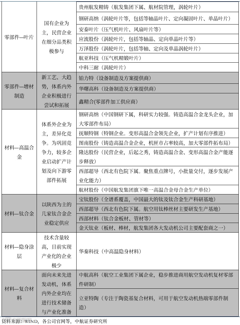 ③ 专注关键技术,在细分领域(如先进材料、叶片、增材制造等)上取得突破的体系外企业,有望高筑行业壁垒,形成稳定配套