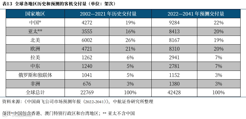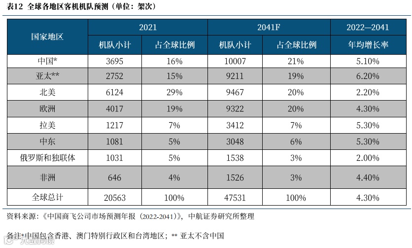 2022年11月8日,在第十四届中国国际航空航天博览会上,中国商飞公司发布《中国商飞公司市场预测年报(2022-2041)》(简称“年报”),对未来20年全球和中国的商用飞机市场作出分析预测。该报告是中国商飞基于对航空运输相关影响因素分析,应用全球经济、运量、机队等数据进行预测建模,通过航空市场供需分析,以及后疫情时代和长期发展趋势的判断,对全球和各地区未来20年航空需求增长和机队变化作出的预测。