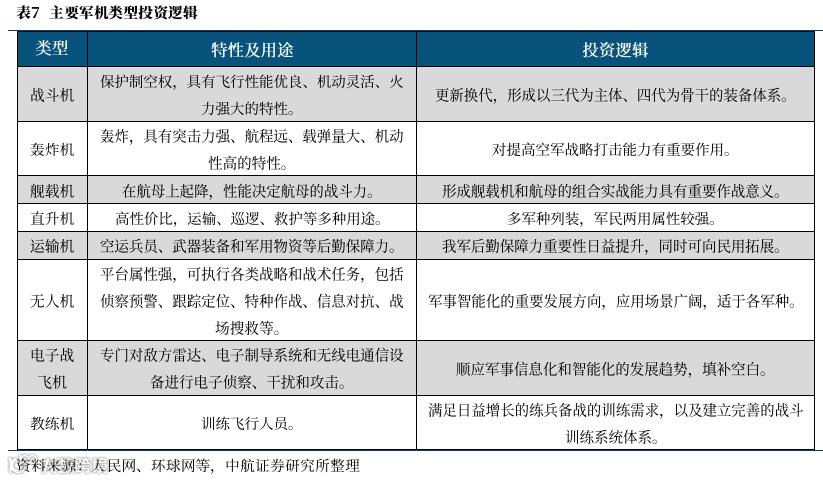 另一方面,近年来,我国面临周边环境日益复杂,舰载机和航母的组合实战、战斗机大航程巡航作战和隐身突防、适应高原环境的武装直升机、向高原运送物资的大型运输机等新需求亟待满足,这就对军机执行作战任务的能力提出了更高的要求,也构成了我国军机未来需要重点突破的发展方向,市场的空间不只是规模性的,结构性的转变也在同步推进。对于不同类型的军机,投向的重点将沿着优化武器装备规模结构以及发展新型武器装备的战略方向。