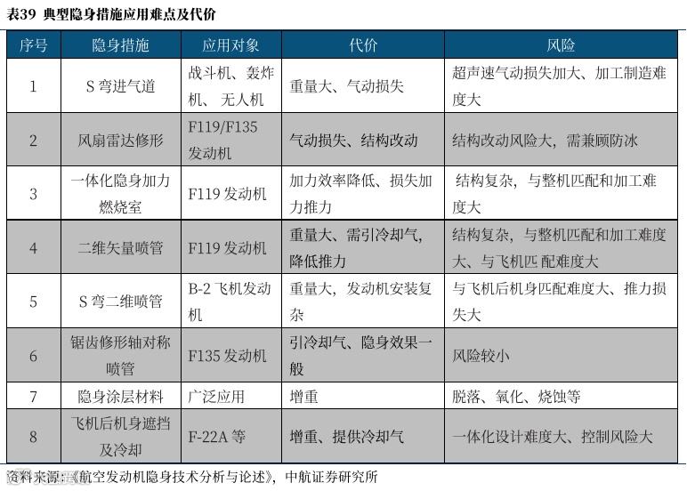 四代战斗机及未来的隐身飞机对发动机提出了较高的隐身指标要求。而发动机后腔体及其内部件和边缘等产生的雷达散射信号、后腔体及其热端部件和尾喷流等产生的红外辐射信号占整个飞机尾部方向特征信号的 95%以上。此外,发动机喷管的颜色、腔体反射及尾喷流产生的高温热态水蒸气遇冷产生的尾迹会对飞机的可见光隐身产生较大困难。如果发动机不能实现后向的隐身,则隐身飞机无法实现全方位的隐身,其作战能力将大幅降低。