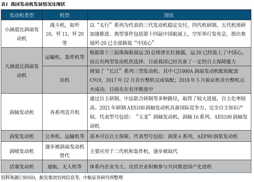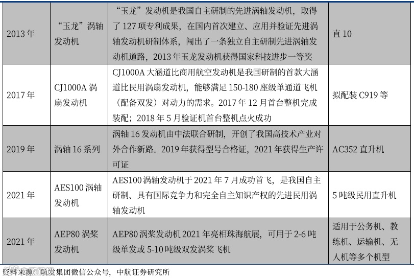 ③ 具备研制生产当今几乎所有种类航空动力产品的能力