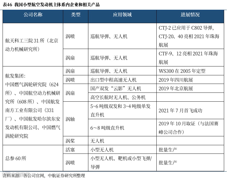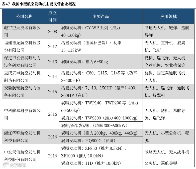近几年,随着军品市场准入门槛降低和我国工业制造水平的提升,加之小航发本身的研制门槛相对较低,系统外企业在小航发领域日渐活跃,相关的民营企业数量也逐渐增加,各家企业之间差异化竞争,产品系列基本上覆盖了小型航空发动机的主要应用范围。