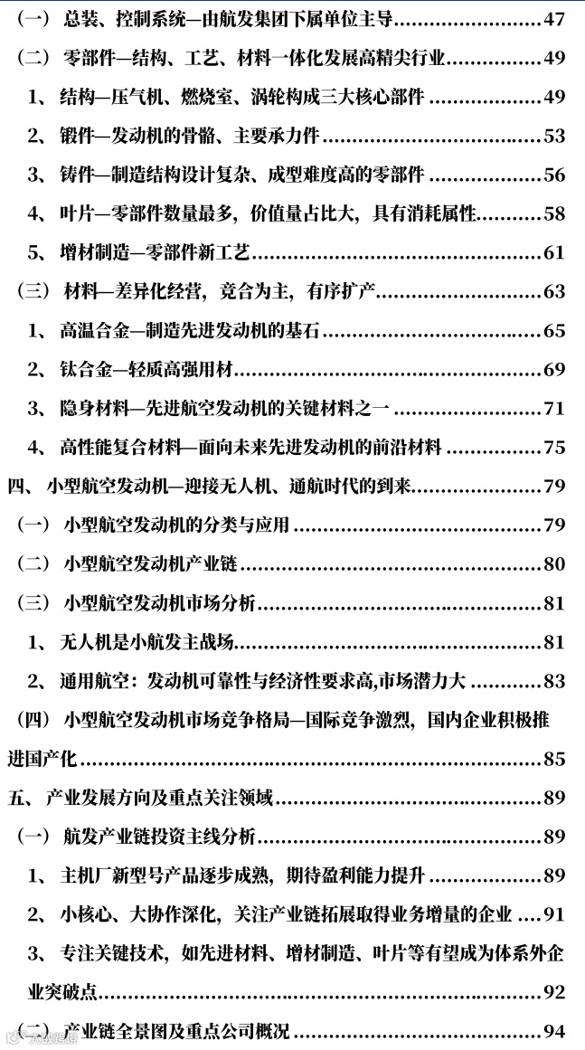 整体而言,航空发动机产业链已经初步具备产业基础,研制产品稳步推进,定型产品呈现多元化、谱系化发展;下游需求的高景气催生产业的高速发展,航空发动机迎来了发展机遇期。