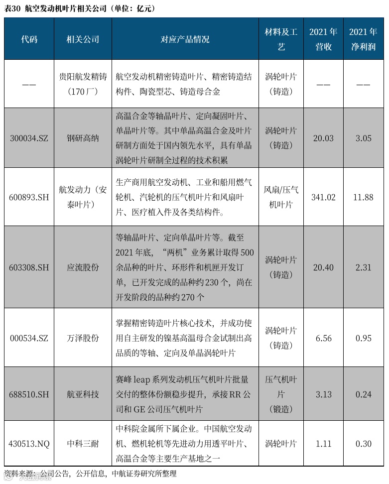 叶片是航空发动机关键零件,它的制造量占整机制造量的三分之一左右,是发动机中数量最大的一类零件。工信部将其列为工业基础产品和工艺应用难题,并给出航空发动机耐高温叶片“一条龙”应用计划示范企业。在叶片领域,航亚科技的精锻叶片、应流股份高温合金叶片等均取得了不错的进展。