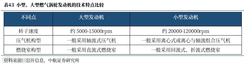 相比于大涵道比民用涡扇发动机和大推力军用涡喷、涡扇发动机,小型燃气涡轮发动机并非大型航发的缩比,具有其独特的技术特点。首先,由于气动、结构和强度方面的“尺寸效应”,小航发的转速是大航发转速的3到5倍,甚至达到十几倍,因此在轴承、传动、润滑方面的设计不同。其次,大型航发多选择轴流式压气机,小型燃气涡轮发动机多采用离心压气机或离心与轴流结合的压气机技术。为了更好的匹配离心式叶片、保障燃油的高效燃烧,燃烧室往往采用回流或折流等特殊设计。因此,小航发的研制方法并不能照搬大航发,而需要专业团队进行专门设计研究。活塞发动机提高功率的办法主要是增加气缸数量,普惠公司R-4360发动机气缸数量28个,功率约2600kW,基本上代表了活塞发动机功率的巅峰,仍然属于小型航空发动机的范畴。