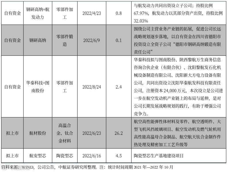 与此同时,航空发动机供应链也发生了较为可喜的变化,一方面以航发集团为代表的“国家队”发挥产业链“链长”带头作用, 采用“小核心、大协作、专业化、开放式”战略,逐步培育完善供应体系;同时,航发集团通过成立航发资产公司、下设航发基金等举措,以资本为纽带,围绕原材料、生产设备、军工电子、小型航空发动机等多个产业链环节进行了布局,形成产业和投资相互促进的良性循环。