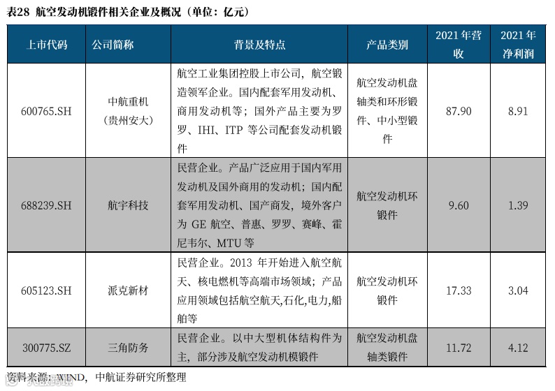 相关上市公司:钢研高纳(300034.SZ)、图南股份(300855.SZ)、华秦科技(688281.SH)、锻造产业链相关上市企业。