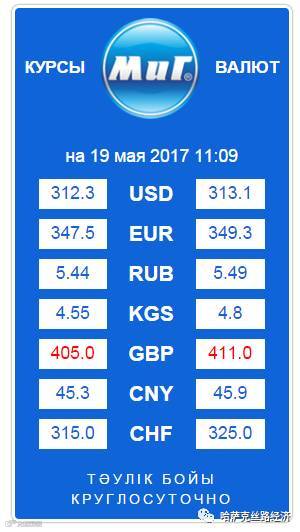 【обменный курс】2017年5月19日哈萨克斯坦坚戈汇率