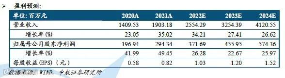 基于以上观点,我们预计公司2022-2024年的营业收入分别为25.54亿元、32.54亿元和41.21亿元,归母净利润分别为3.72亿元、4.56亿元及5.74亿元,EPS分别为1.03元、1.20元、1.52元,我们给予目标价格49.60元,分别对应48倍、41倍及33倍PE。