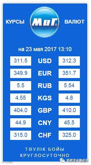 【обменный курс】2017年5月23日哈萨克斯坦坚戈汇率
