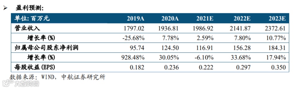 基于以上观点,我们预计公司2021-2023年的营业收入分别为19.87亿元、21.42亿元和23.73亿元,归母净利润分别为1.17亿元、1.56亿元及1.84亿元,EPS分别为0.22元、0.30元、0.35元,我们给予“买入”评级,目标价格7.04元,分别对应32倍、23倍及20倍PE,当前不到1.3pb。