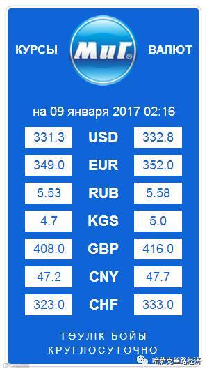【обменный курс】2017年1月9日哈萨克斯坦坚戈汇率