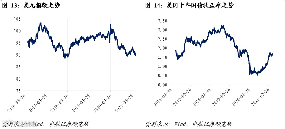 投资策略方面,继续建议绝对收益导向的组合维持50%中性仓位(4月26日发布报告《震荡行情延续,边际改善已现端倪》由20%调升至50%)。市场本周震荡上行,货币政策维持平稳,政策环境温和。最近两个月美元指数下行,美元急剧升值的压力已有所放缓。美元走势与新兴市场权益资产价格走势呈现负相关性,美元指数伴随着美国经济复苏不断走高的同时也导致全球资金往美国的回笼,对新兴市场形成抽水效应。但随着未来欧洲疫苗接种进程的展开,美欧经济复苏差会有所收敛,一定程度上压制美元的上涨趋势。