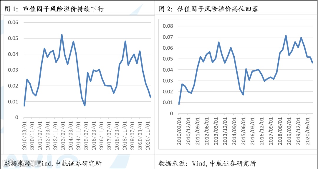 在市值因子有效的最后阶段,传统大市值中估值偏低的银行、保险和地产板块可能仍具备上涨势能,考虑到中小市值风格的估值处于历史低位,市值因子的风险溢价处于十年来的低位,中小市值绩优股或带来明显超额收益。2020年年报和21年1季报的发布或成为中小市值绩优股启动的催化剂,此前个股涨跌幅与市值大小呈现明显的相关性,而这一现象规律在业绩上难以同步实现。业绩披露过程中会出现大市值公司不及预期,也会出现中小市值业绩超预期,将有助于打破过去收益率与市值极强的相关性。综合而言,我们认为当下头部大市值资产的性价比不高,建议配置中小盘顺周期绩优股。
