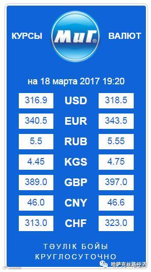 【обменный курс】2017年3月18日哈萨克斯坦坚戈汇率
