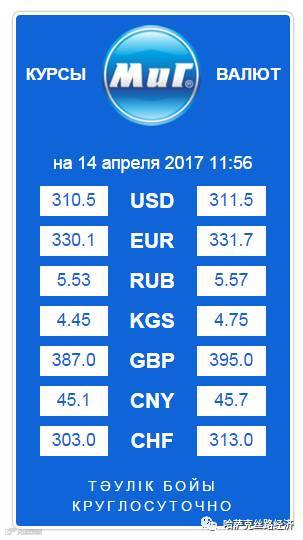 【обменный курс】2017年4月14日哈萨克斯坦坚戈汇率