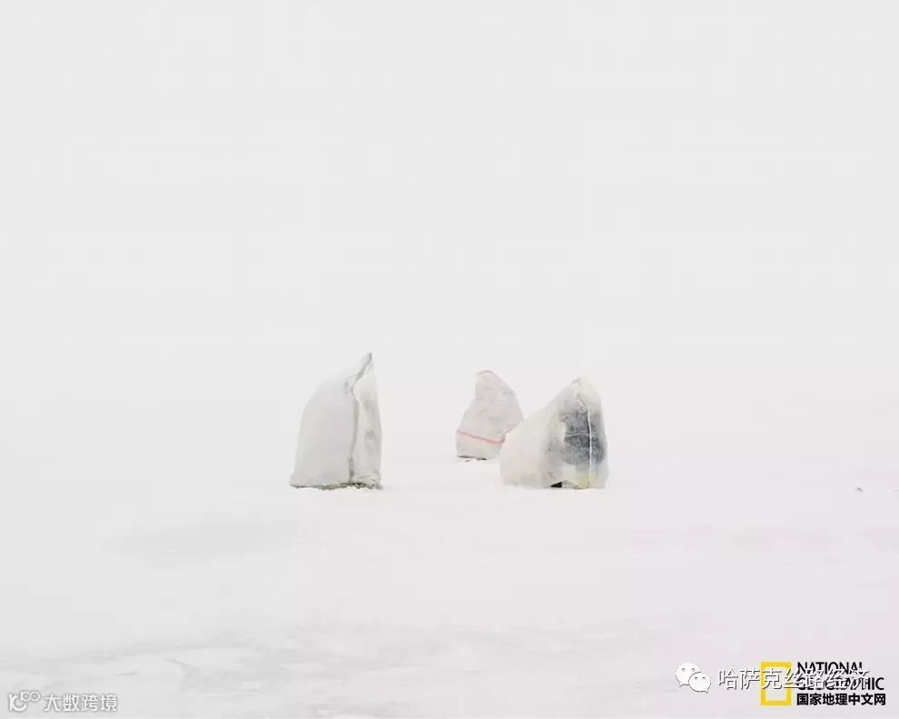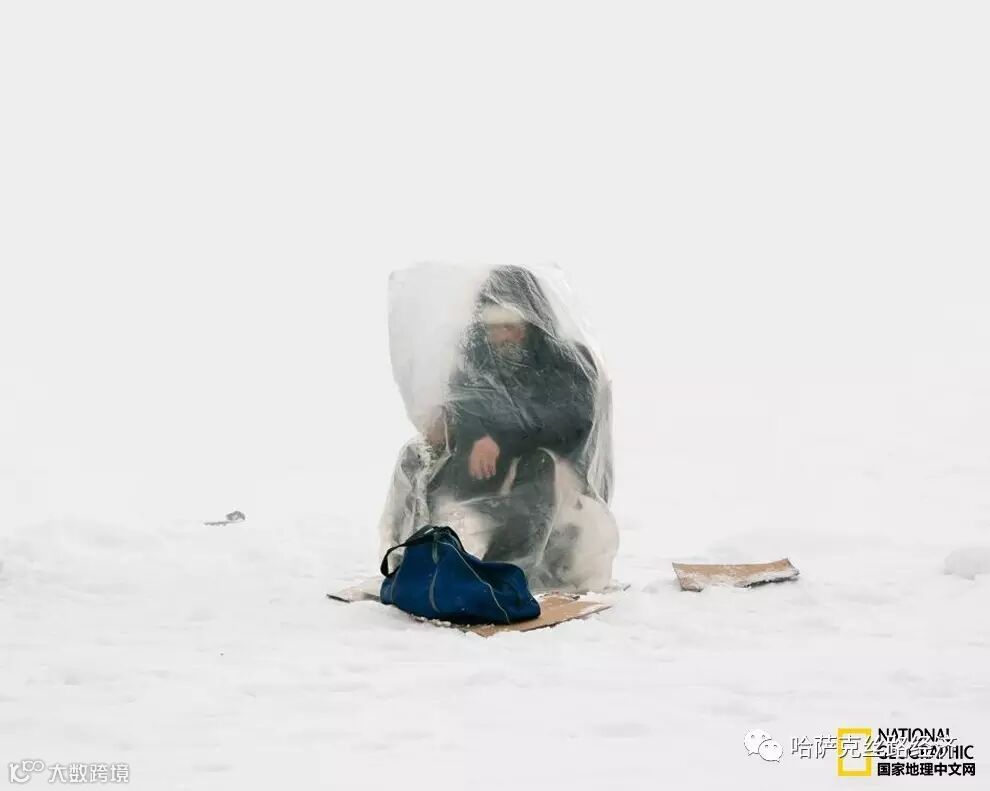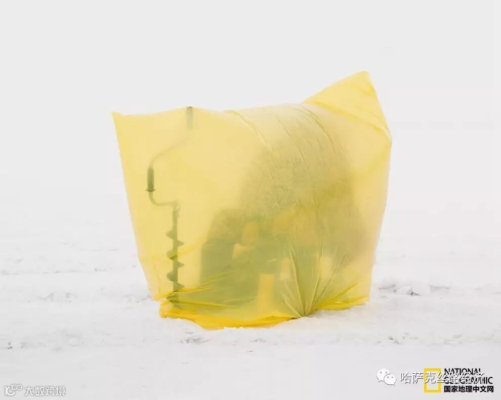 对于渔民们而言,在冰面上开一个洞等鱼上钩是一件很寻常的事情。面对零下34度的酷寒,哈萨克斯坦的渔民会用塑料袋建造了一个小庇护所,以便在刺骨的寒风中保护自己。这些塑料袋通常是废弃的米袋或是食品杂货店丢弃的袋子。这些东西不仅可以防风,而且每当人们呼吸时,“帐篷”的温度就会上升,对于那些以钓鱼为生的人而言,已经是很好的装备了。