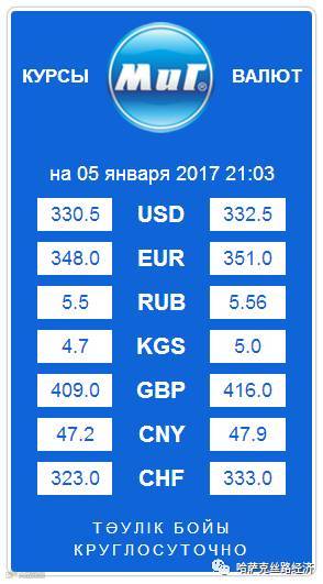 【обменный курс】2017年1月6日哈萨克斯坦坚戈汇率