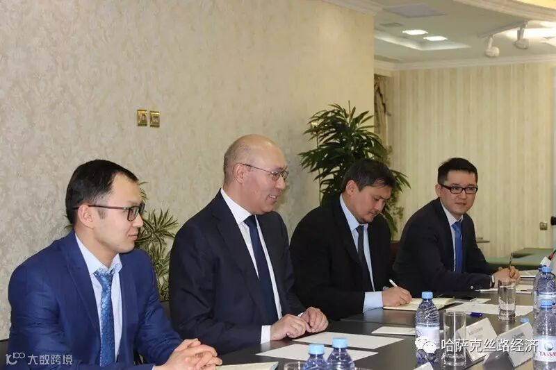哈通社阿斯塔纳 - 阿斯塔纳国际金融中心总裁海拉特•克里姆别托夫21日同中国聚贸集团董事长陆宏翔举行会谈。